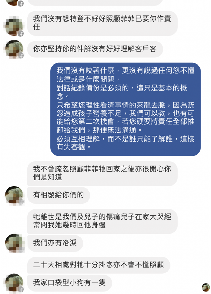 完全不認真看待自己疏忽照顧菲菲,兩個禮拜來,
