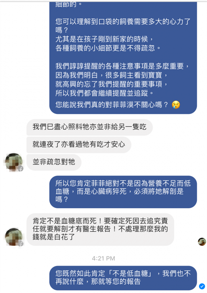 重要的是, 菲菲已抵達香港後的過程中, 飼主自己也有承認