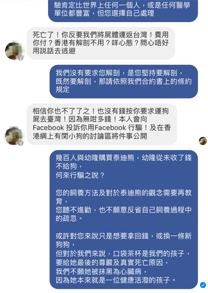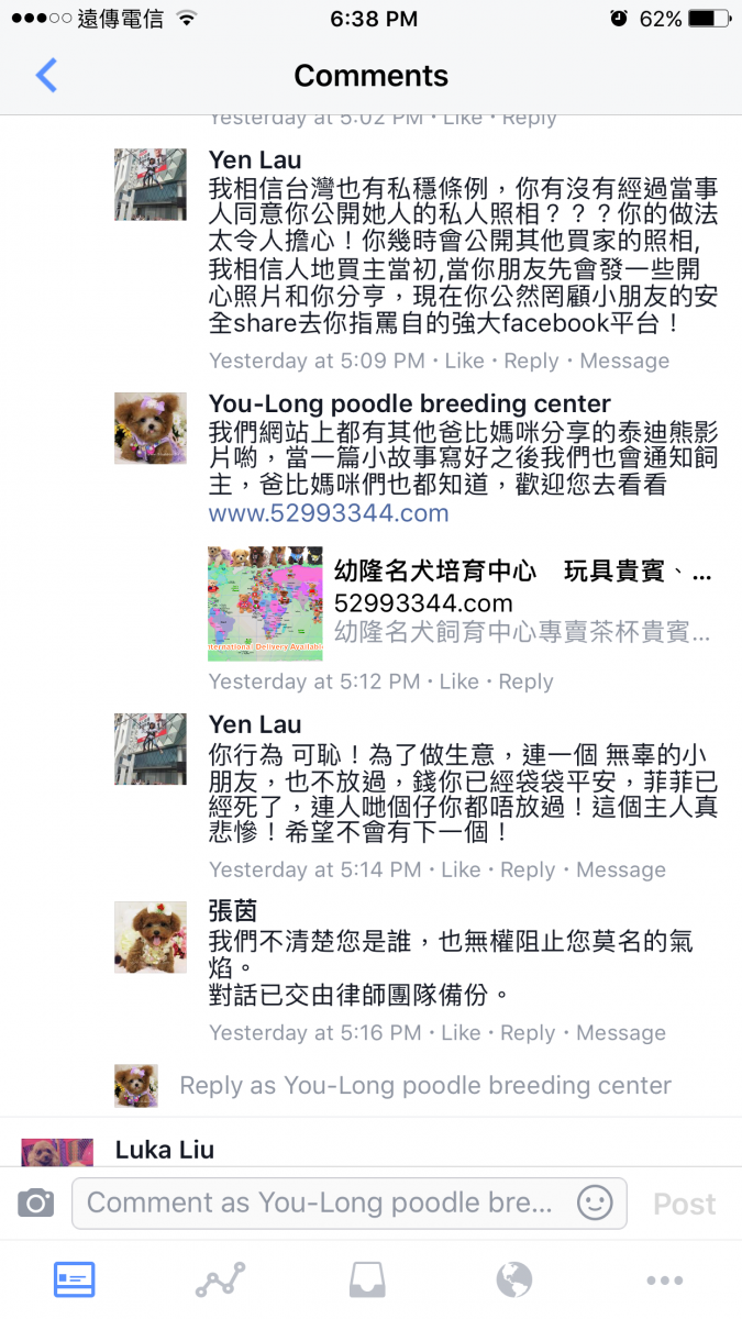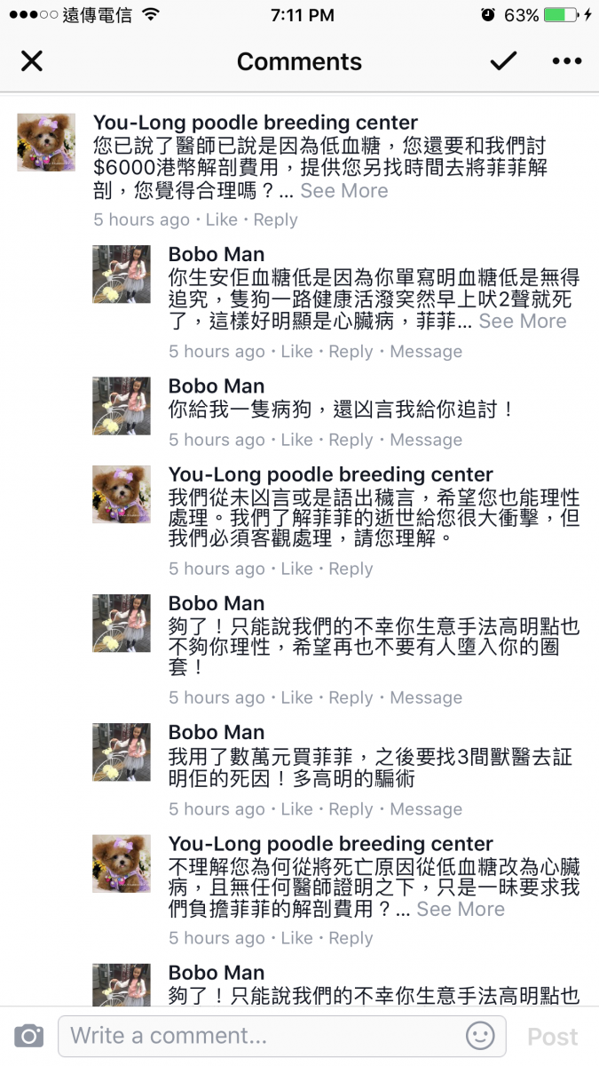5. Lau小姐開始威脅要和Facebook投訴幼隆名犬網購行騙,