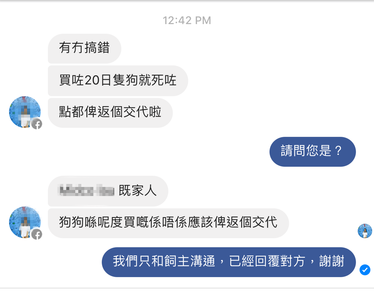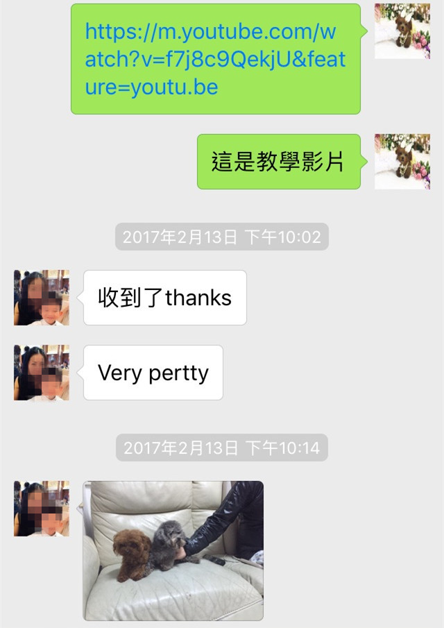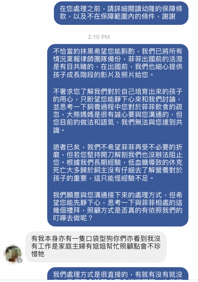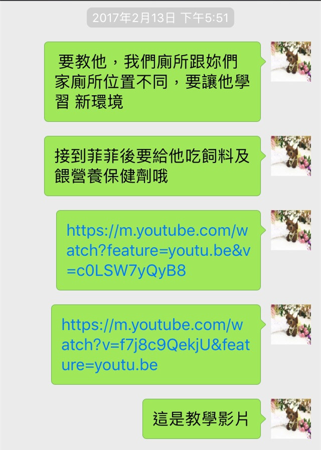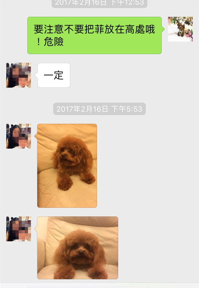 我們不和飼主或買家以外的人溝通有關售出狗狗的細節,