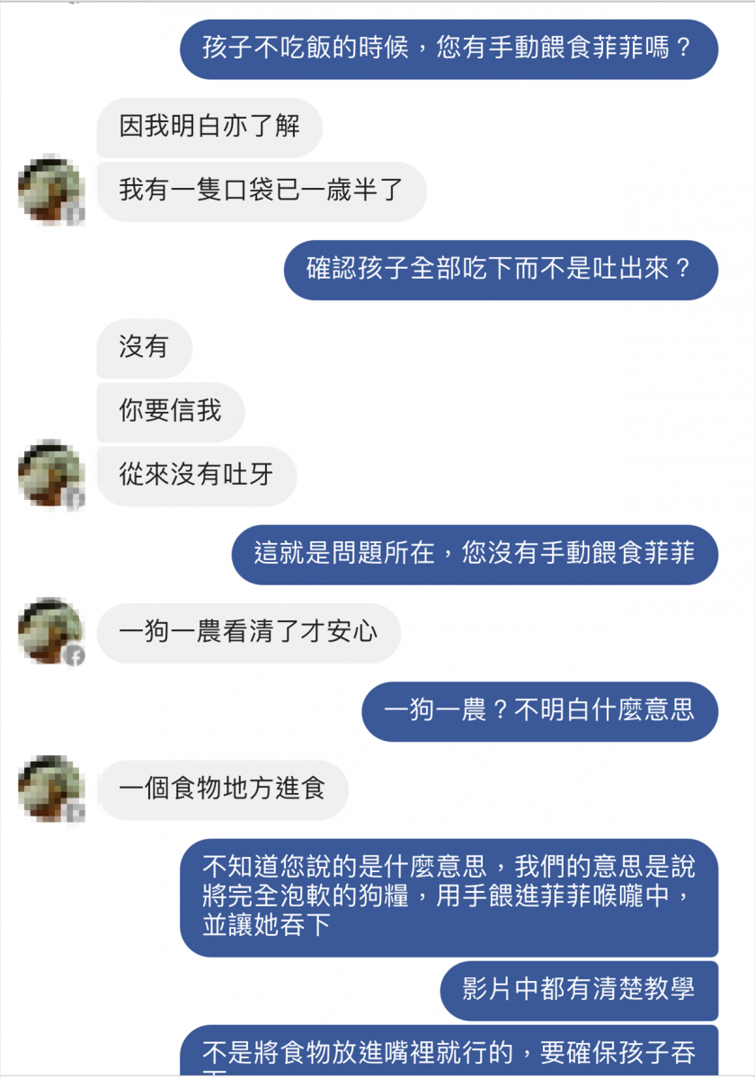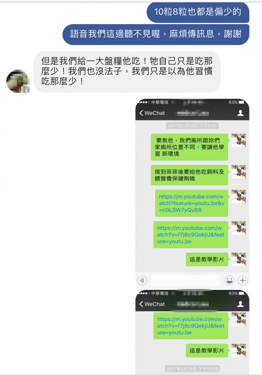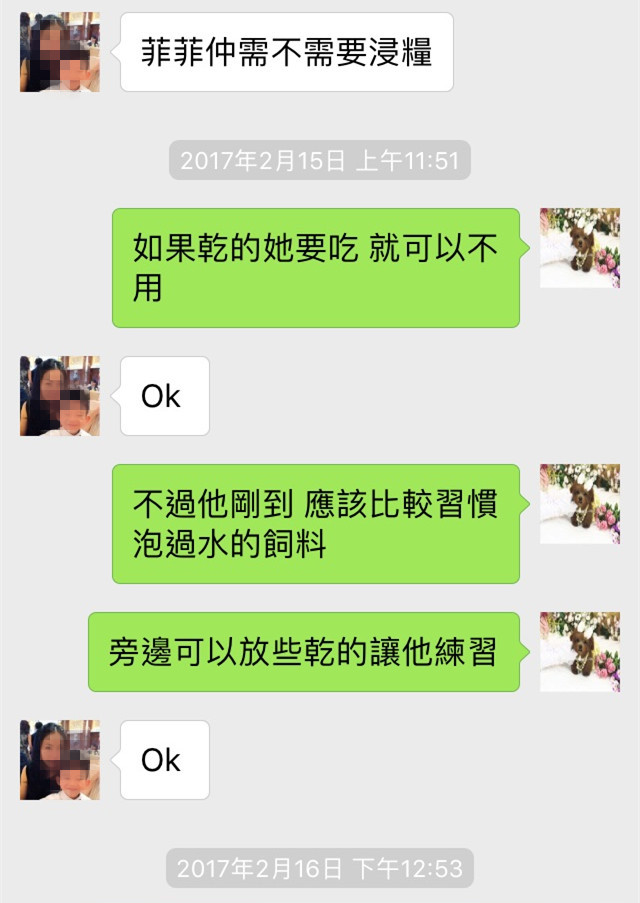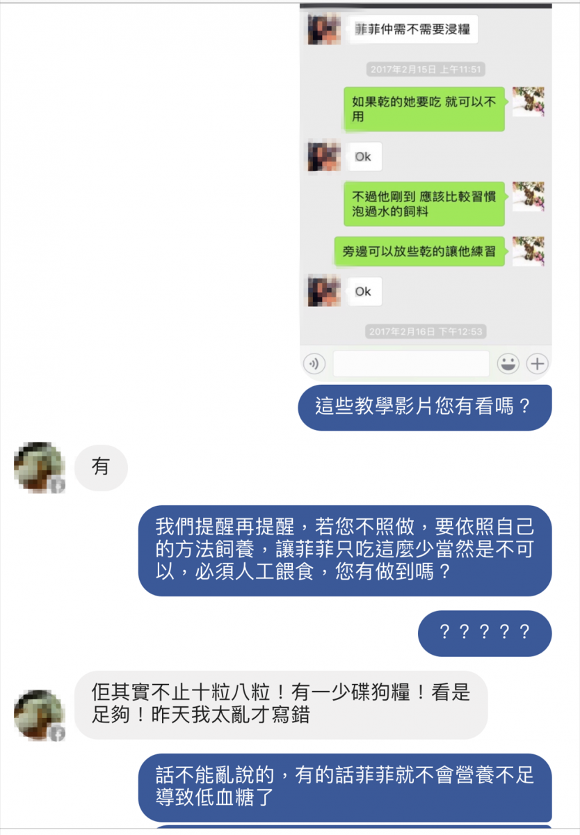 菲菲到港兩天後,Lau小姐還是不太清楚餵食方式,再次詢問