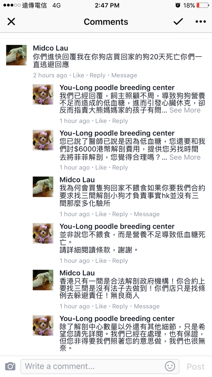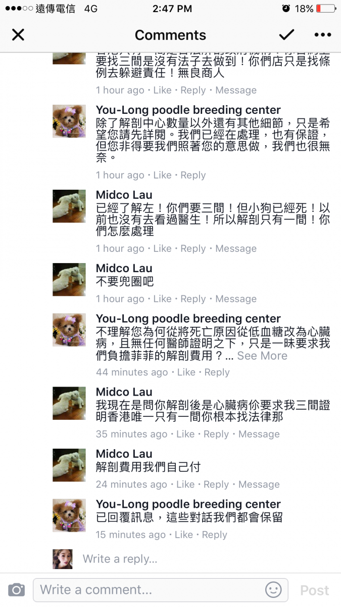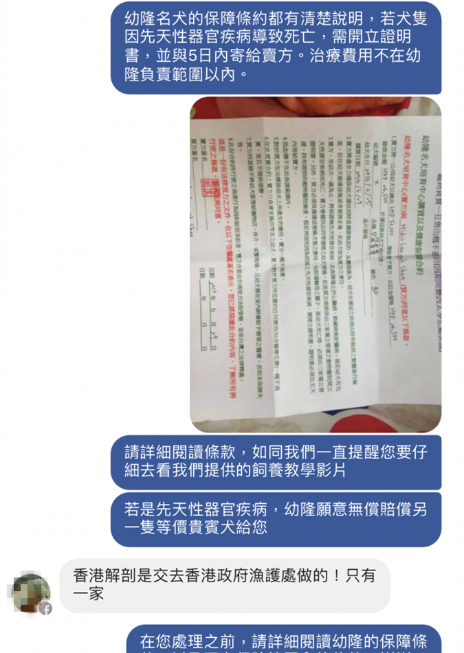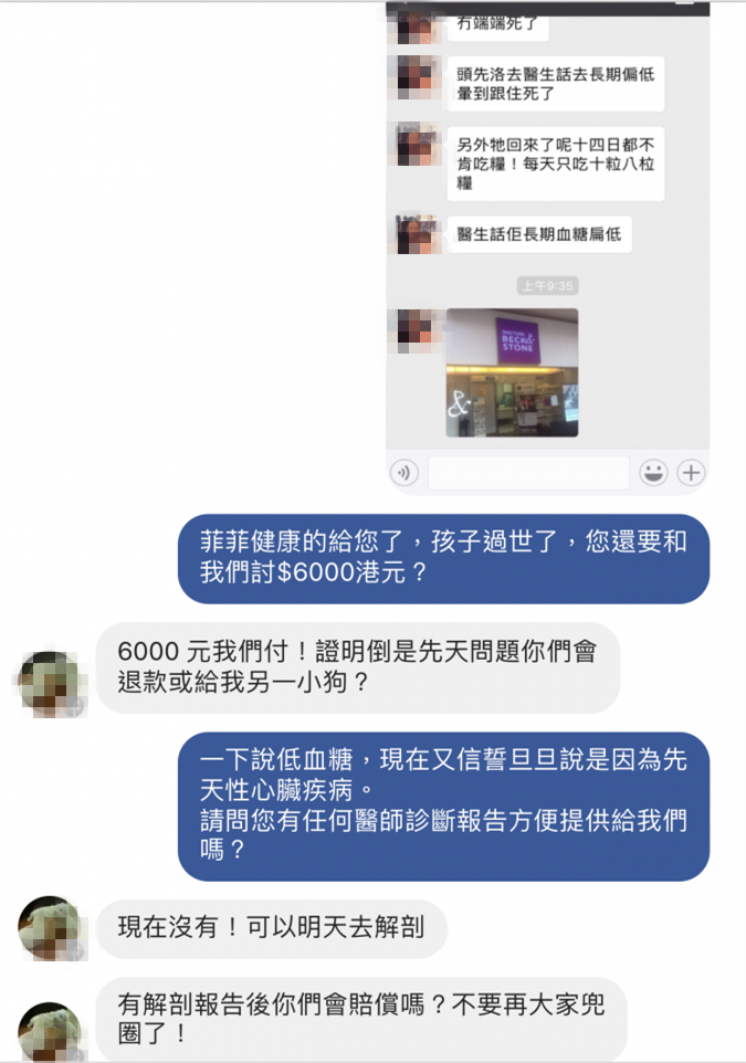 Lau小姐便開始轉向幼隆名犬要求我們支付醫療費用