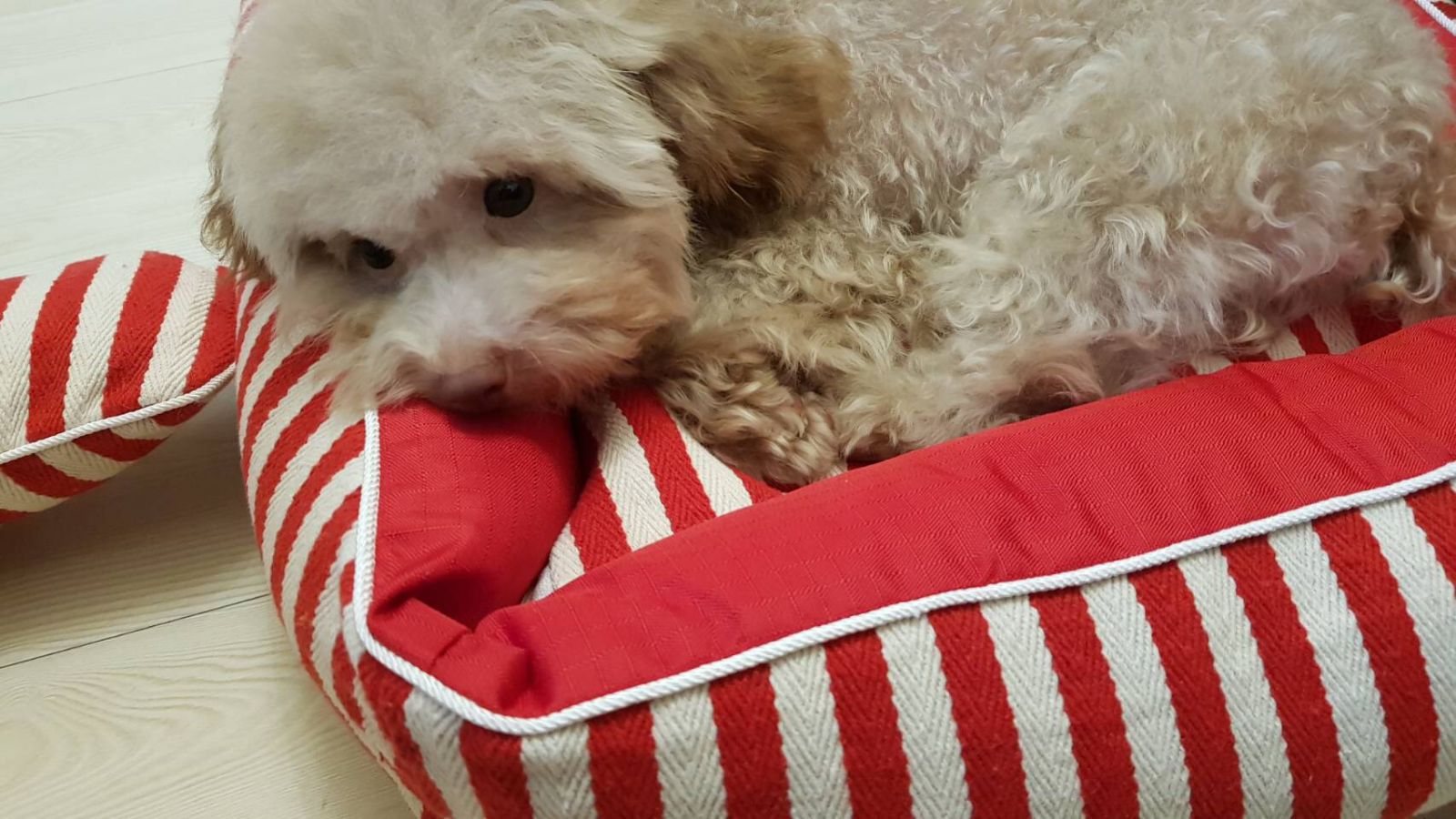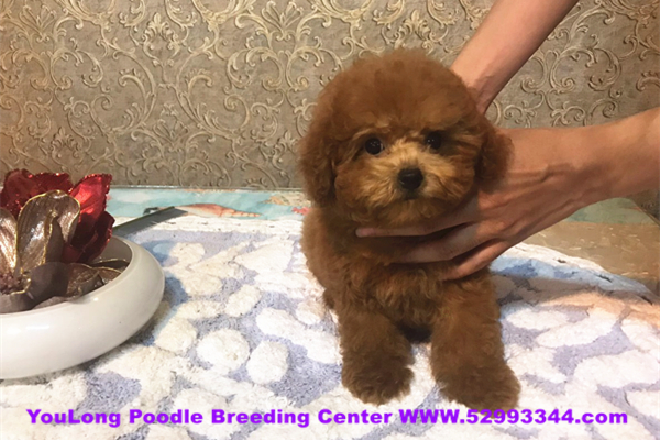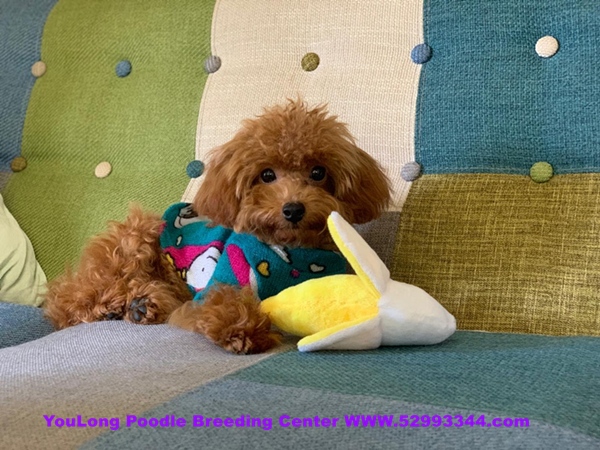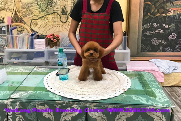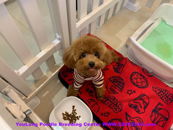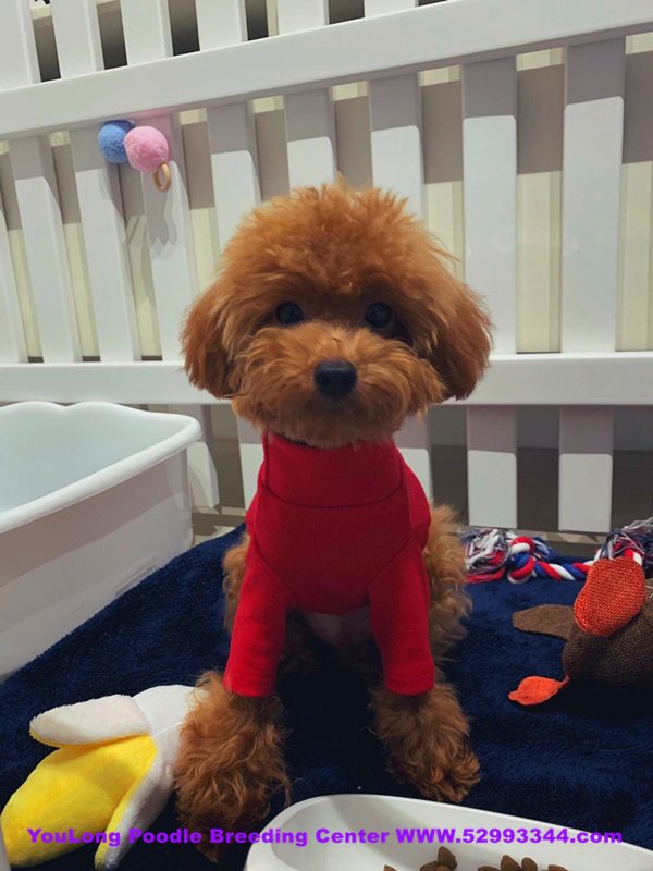 我是一只紅色的茶杯貴賓犬