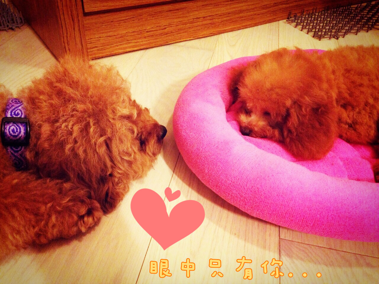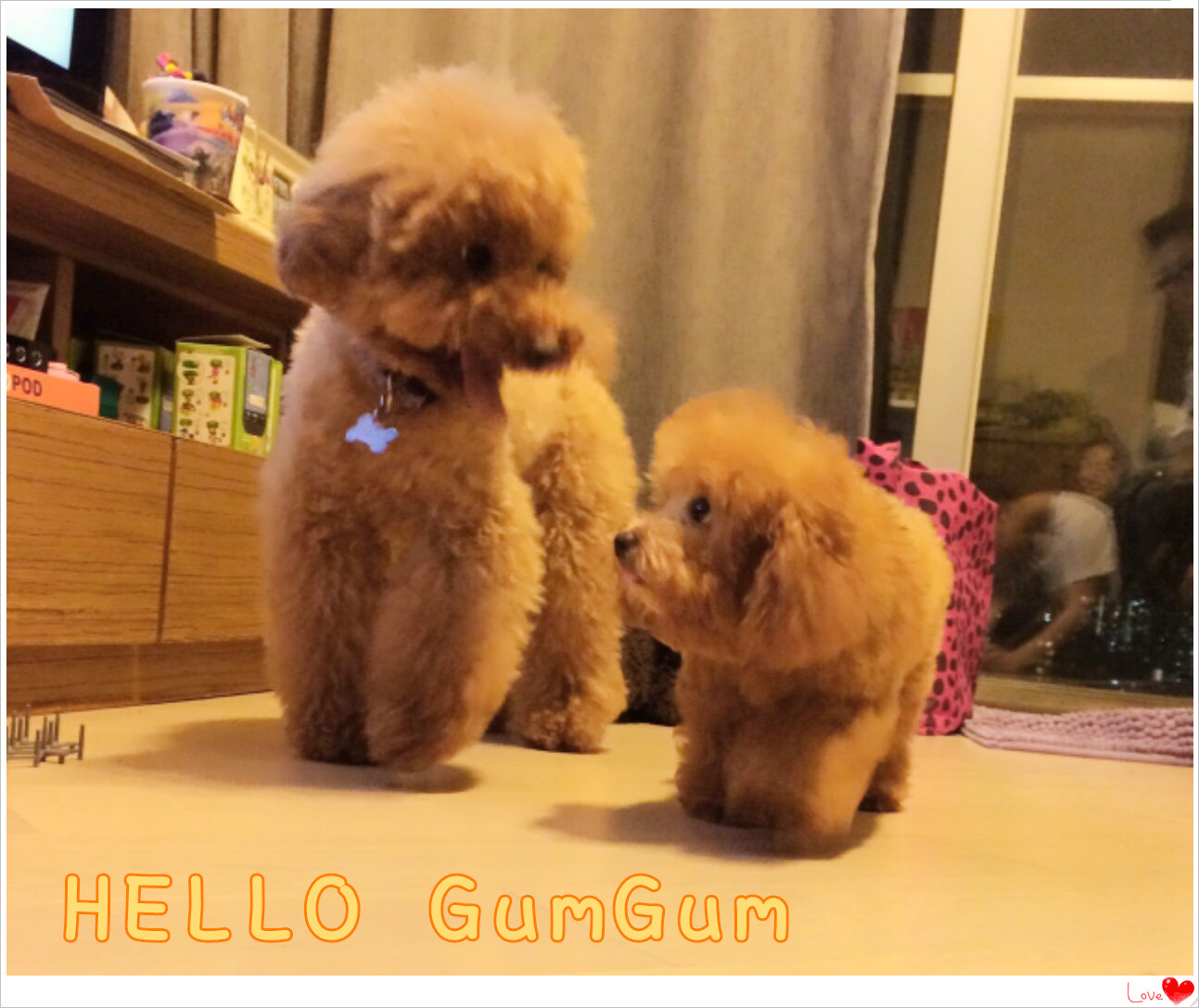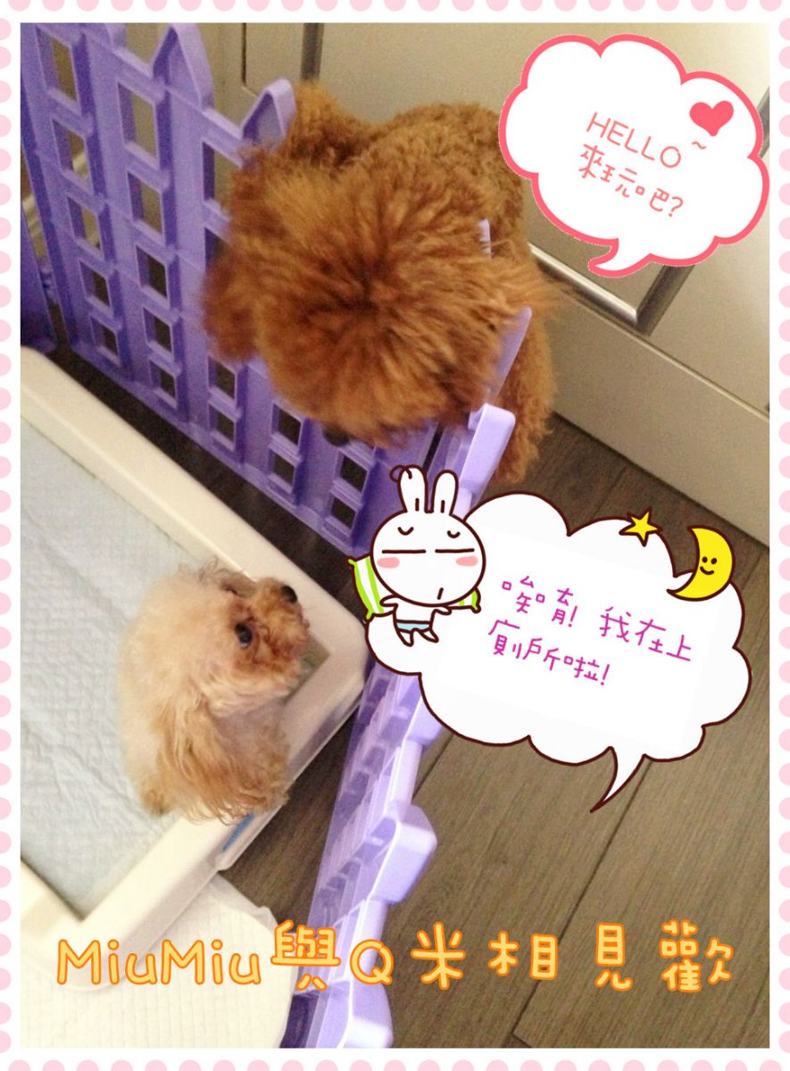 優雅杏色口袋茶杯泰迪貴賓MiuMiu與Q米哥哥第一次見面囉!!