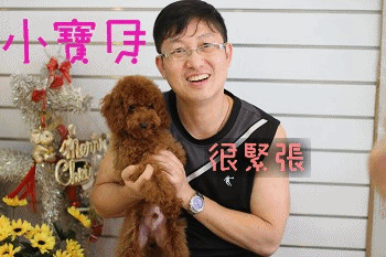 弟弟也是爸比媽咪精挑細選的唷,害羞的媽咪不願入鏡,由隨性的爸比代勞~陪紅貴賓弟弟拍照,