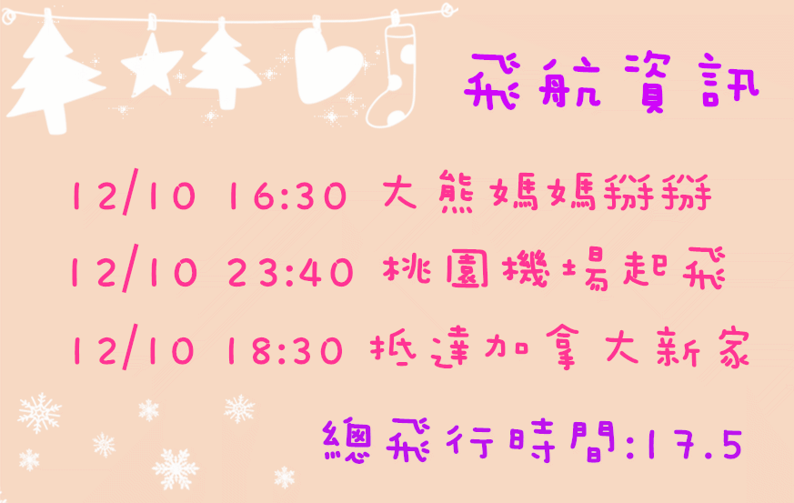 在聖誕節之前我會到達加拿大!!!