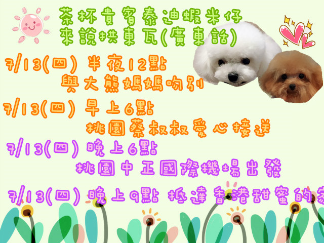 明天的我就會和媽咪在香港的新家團聚囉!!!!!!