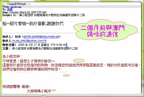 很快的~將想要的狗狗的條件告知大熊媽媽後 ,隔天便隔海下訂嚕~