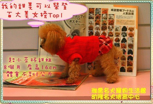 對了,我的米妮姐姐,也是跟我一樣美女的條件,是玩具貴賓中最小型的茶杯紅貴賓,